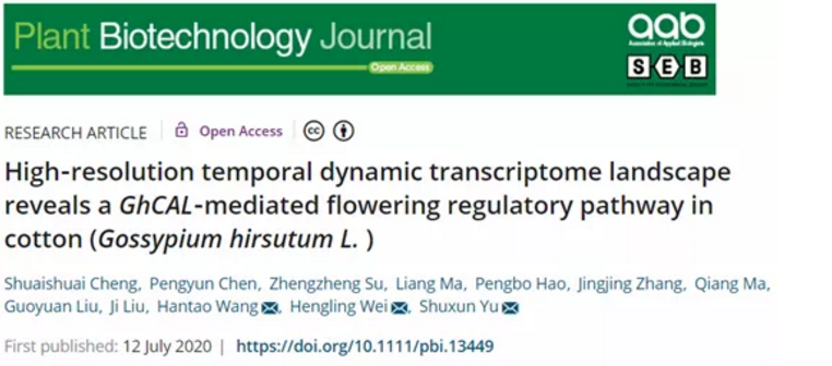 文章題目:High-resolution temporal dynamic transcriptome landscape reveals a GhCAL-mediated flowering regulatory pathway in cotton (Gossypium hirsutum L.)